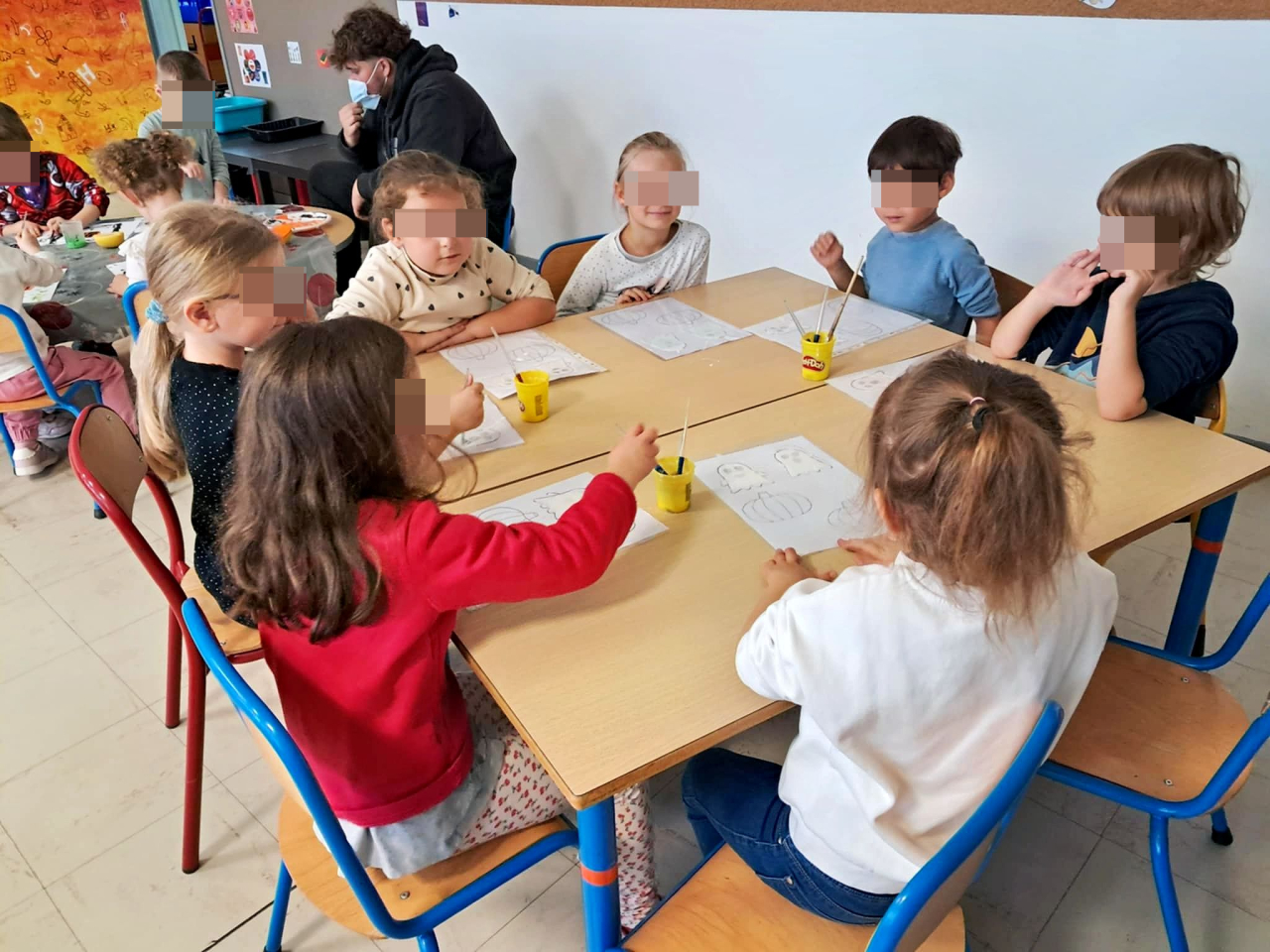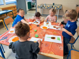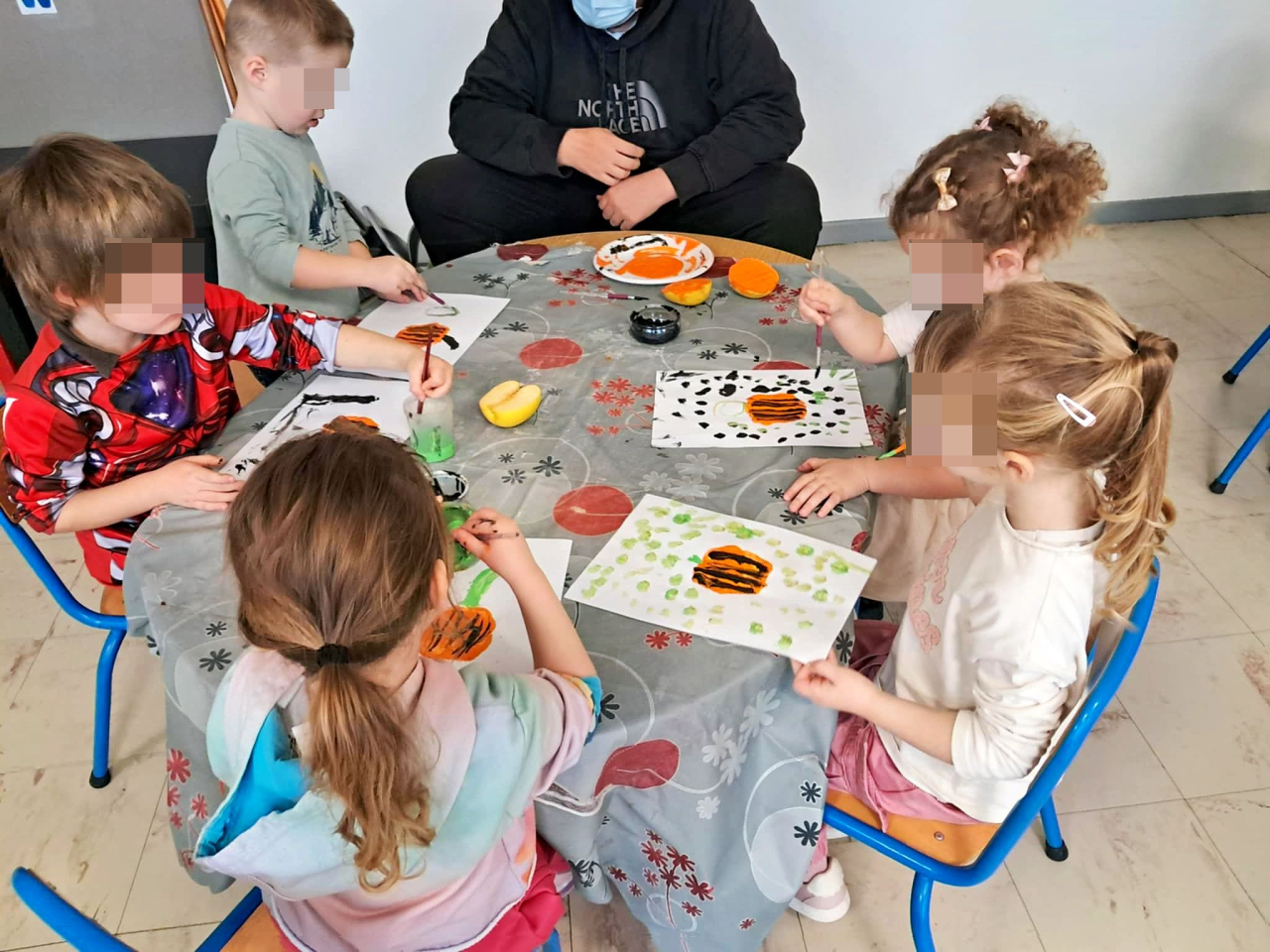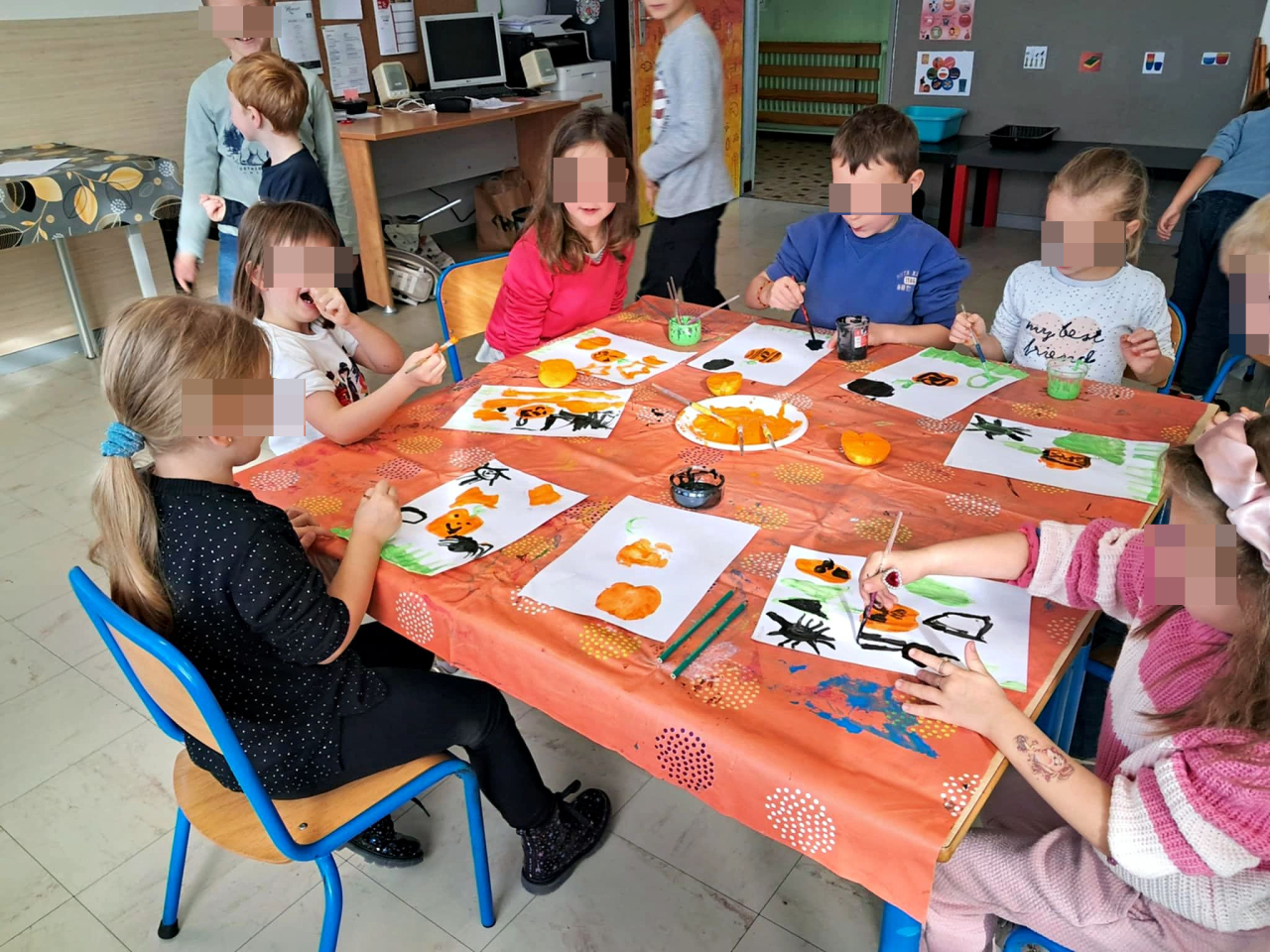 -Peinture : Faire des citrouilles avec des empreintes de pommes